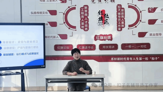 最后,李红霞老师结合自身职业发展路径,分享了辅导员通过课程品牌化、出版专著、设计可视化成果、录制视频课程等方式,实现专业知识输出与个人IP打造的经验;分析了辅导员工作室运行中可能面临的挑战,如何依靠个人努力、团队协作及日常工作标准化、品牌化、成果化实现突破与发展。