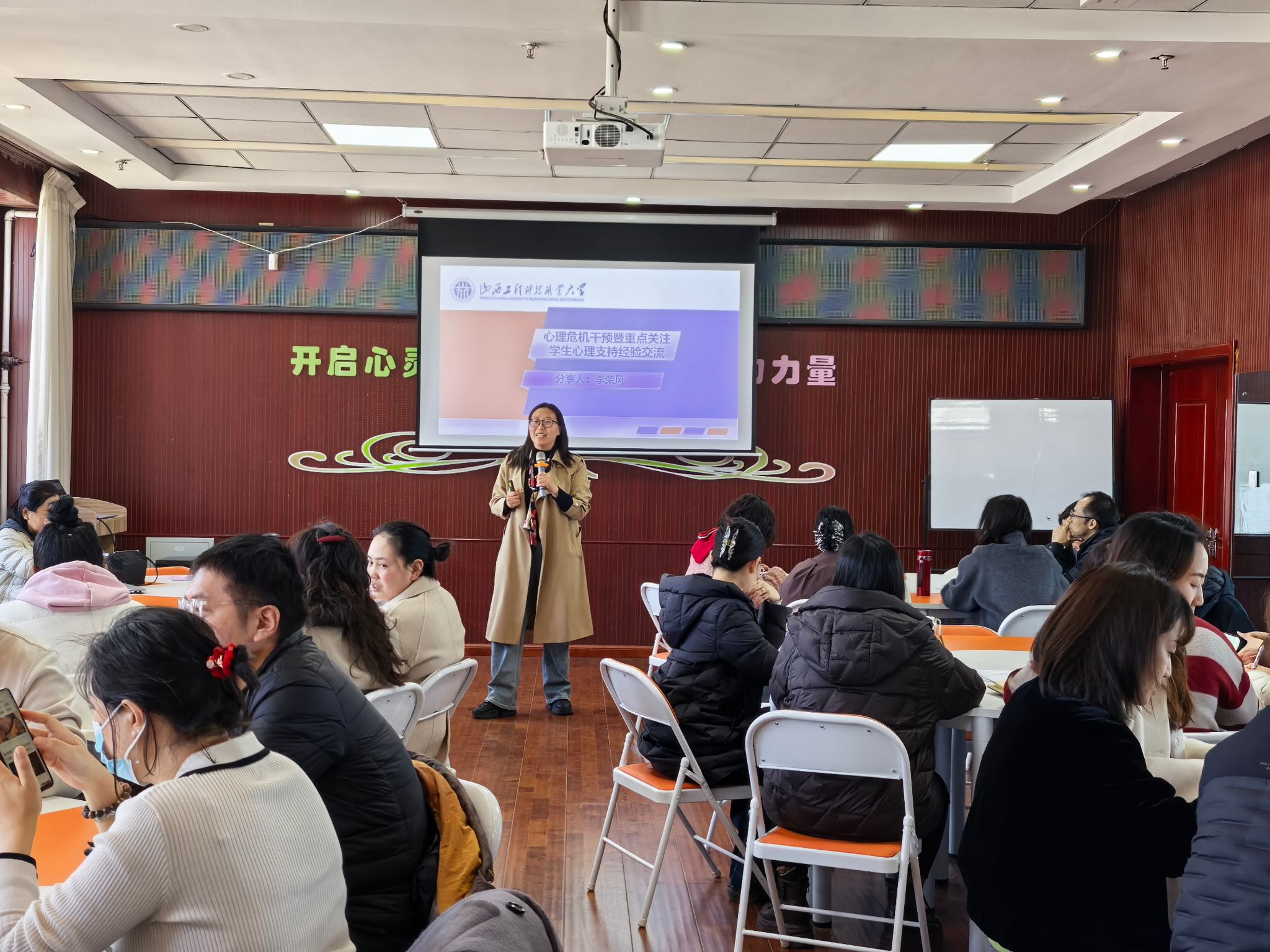 为提升心理站长及辅导员的心理危机干预能力,筑牢学生心理健康防线,2026年3月18日下午,我校学生工作部心理健康教育中心在二号行政楼910组织开展《心理危机干预与重点学生心理支持经验交流》专题讲座暨研讨会。此次讲座由心理健康教育中心副主任李荣风主讲,全体心理站长及负责重点关注学生的辅导员参加。